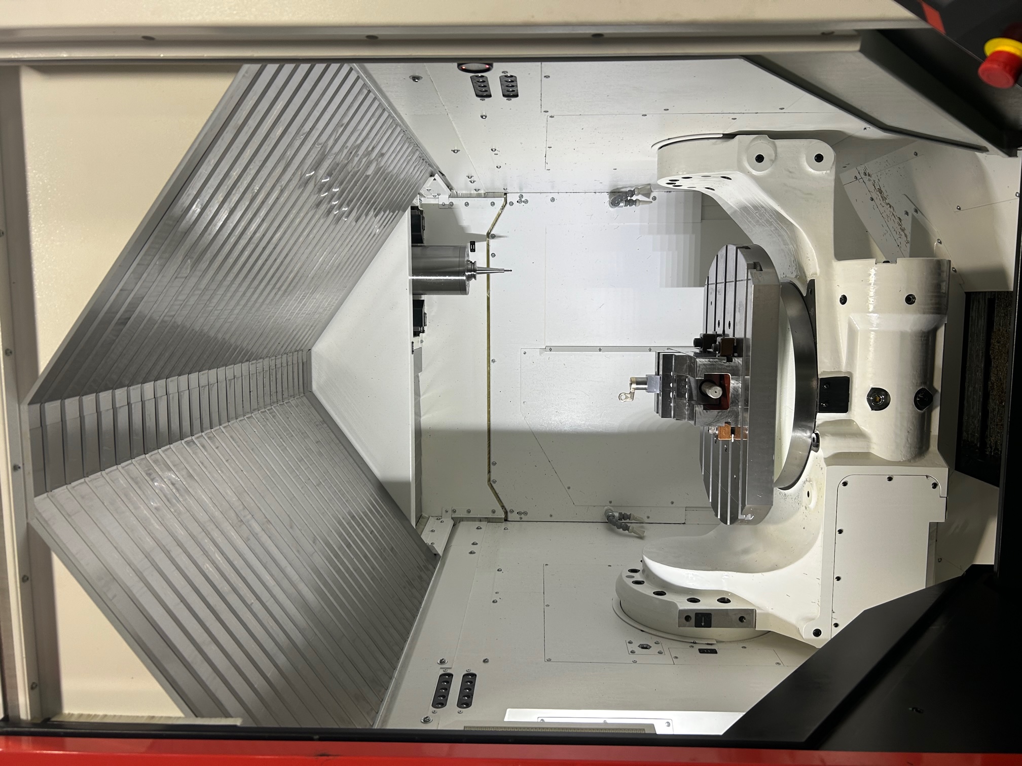 3次元CADでプログラムを組み、ワンチャックであらゆる方向から加工が行えるので、段取り替えが少なく、精度を要する製品の加工が可能。